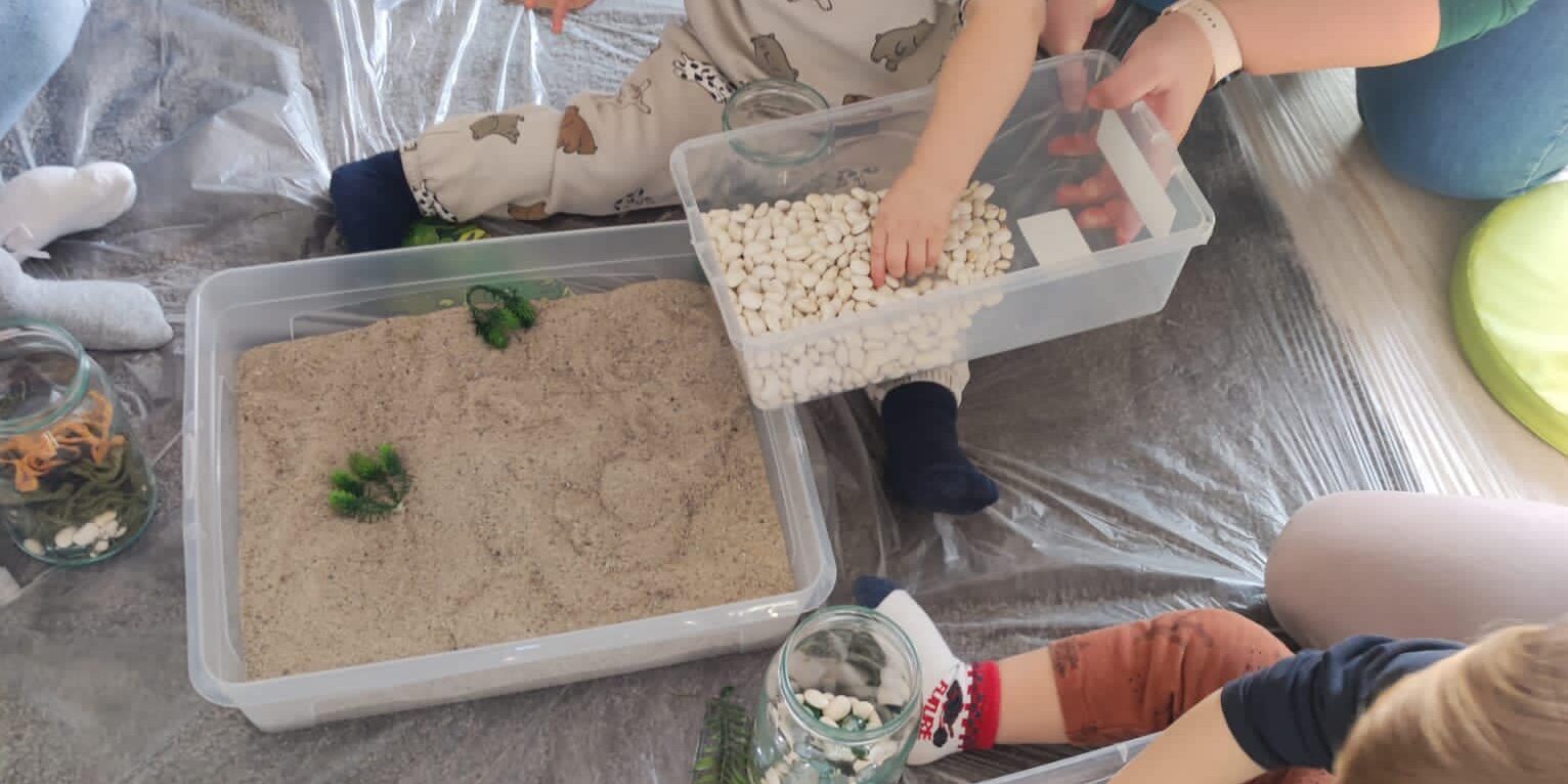 Maluszki własnoręcznie wypełniały słoiki, np. naturalnymi materiałami z lasu i